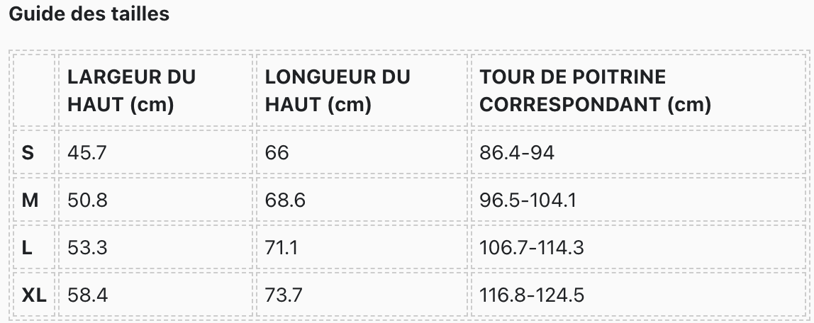 Guide des tailles