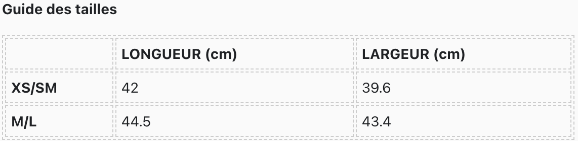 Guide des tailles